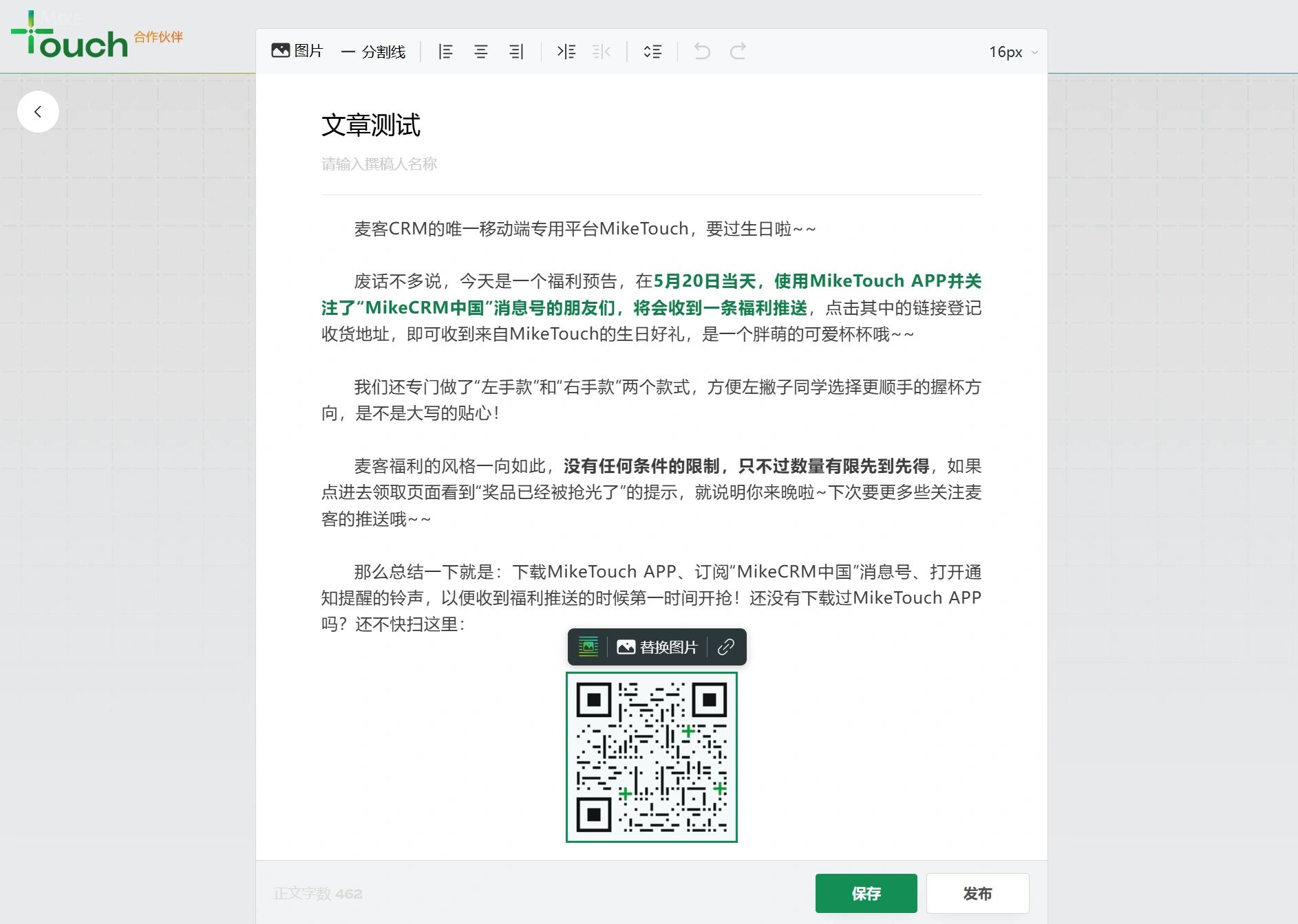 就如同常见的公众号文章那样,MikeTouch也有自己的文章功能。